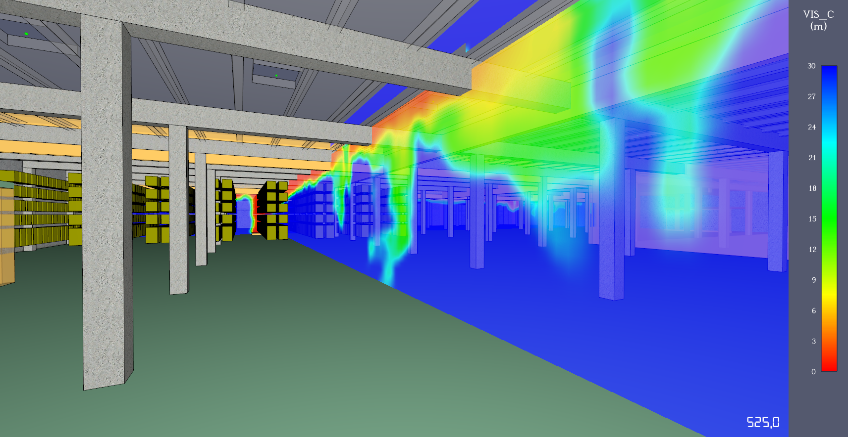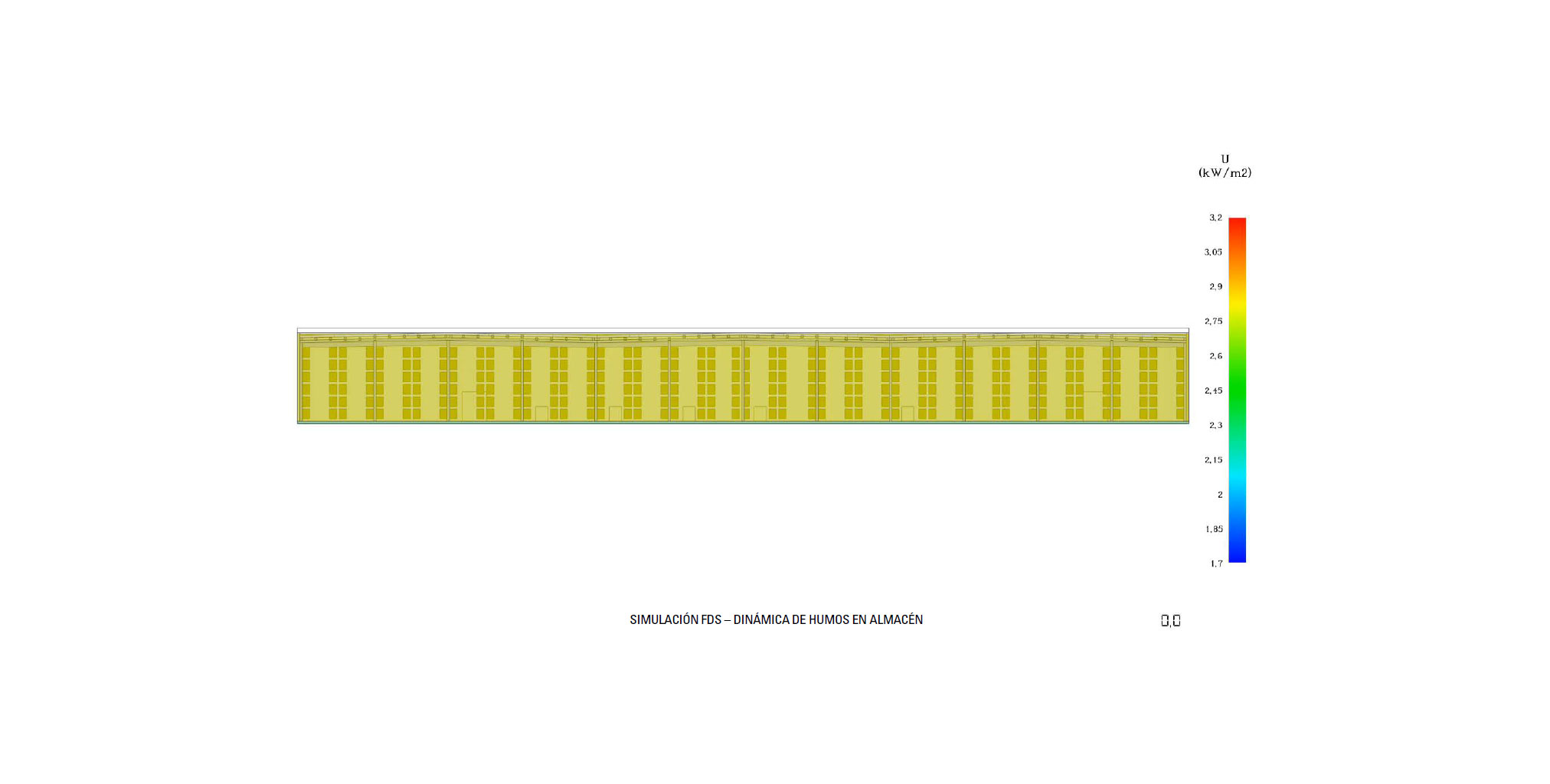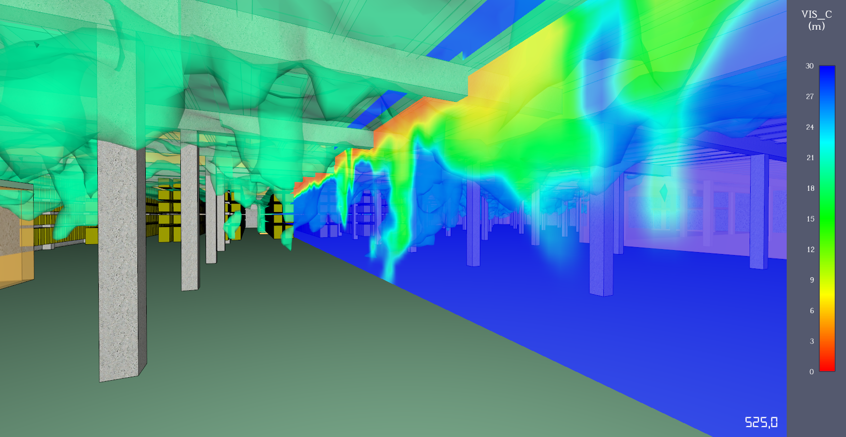 RESULTADO DE HUMO EN 3D (3D SMOKE) EN EL EJE Y SIMULACIÓN FDS – DINÁMICA DE HUMOS EN ALMACÉN